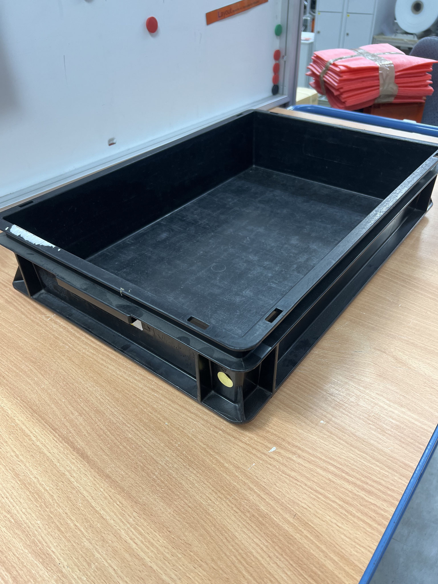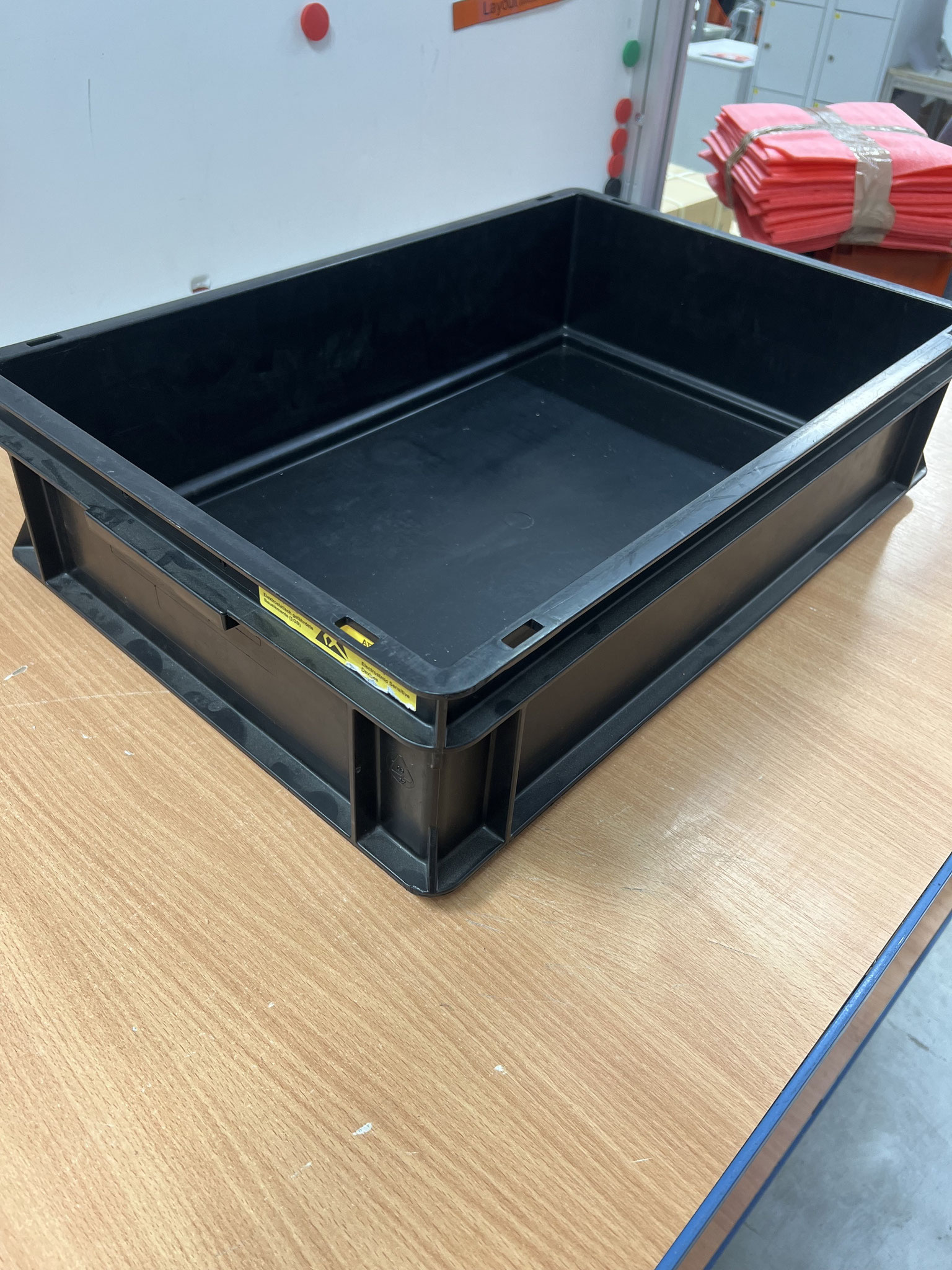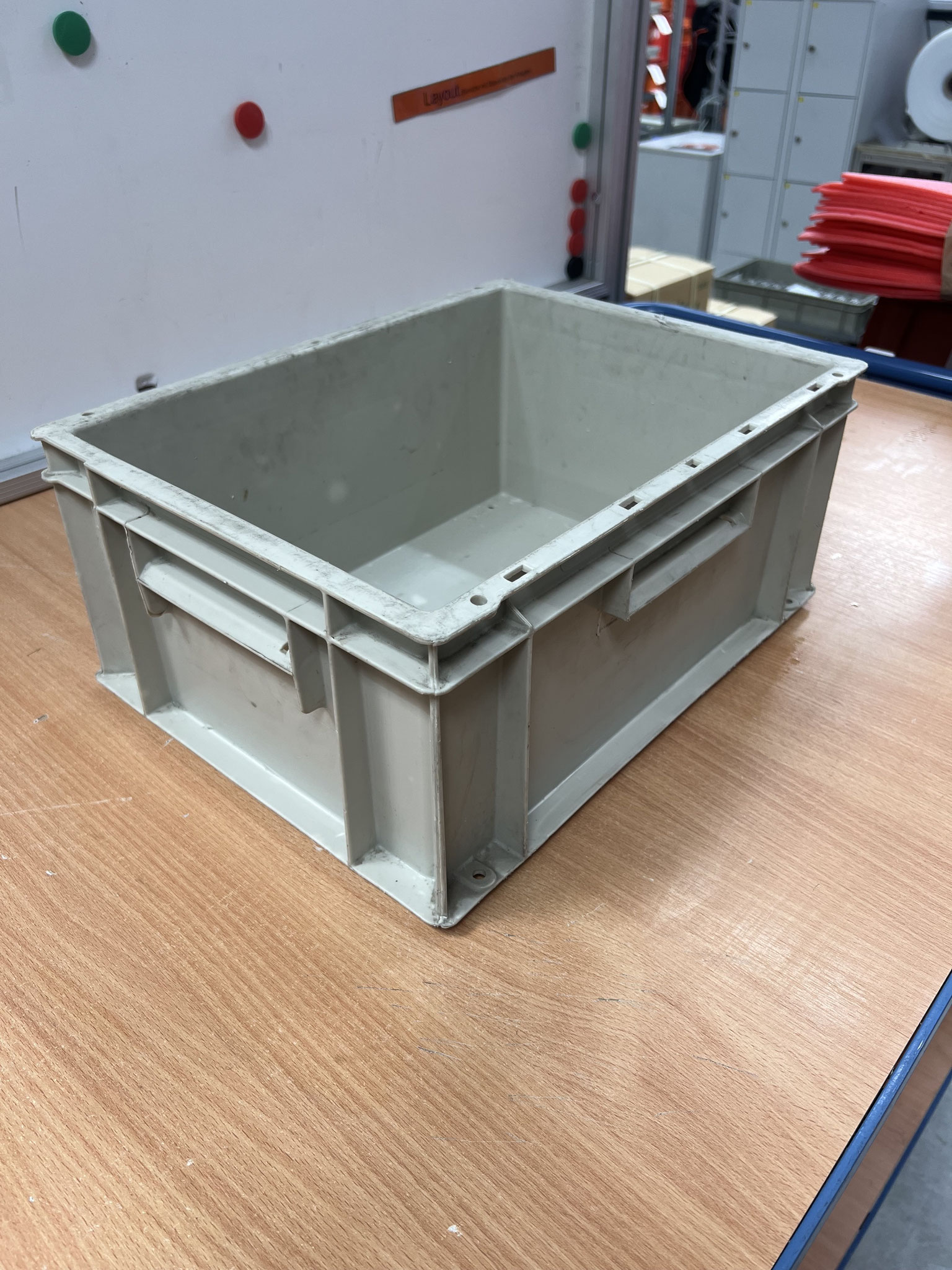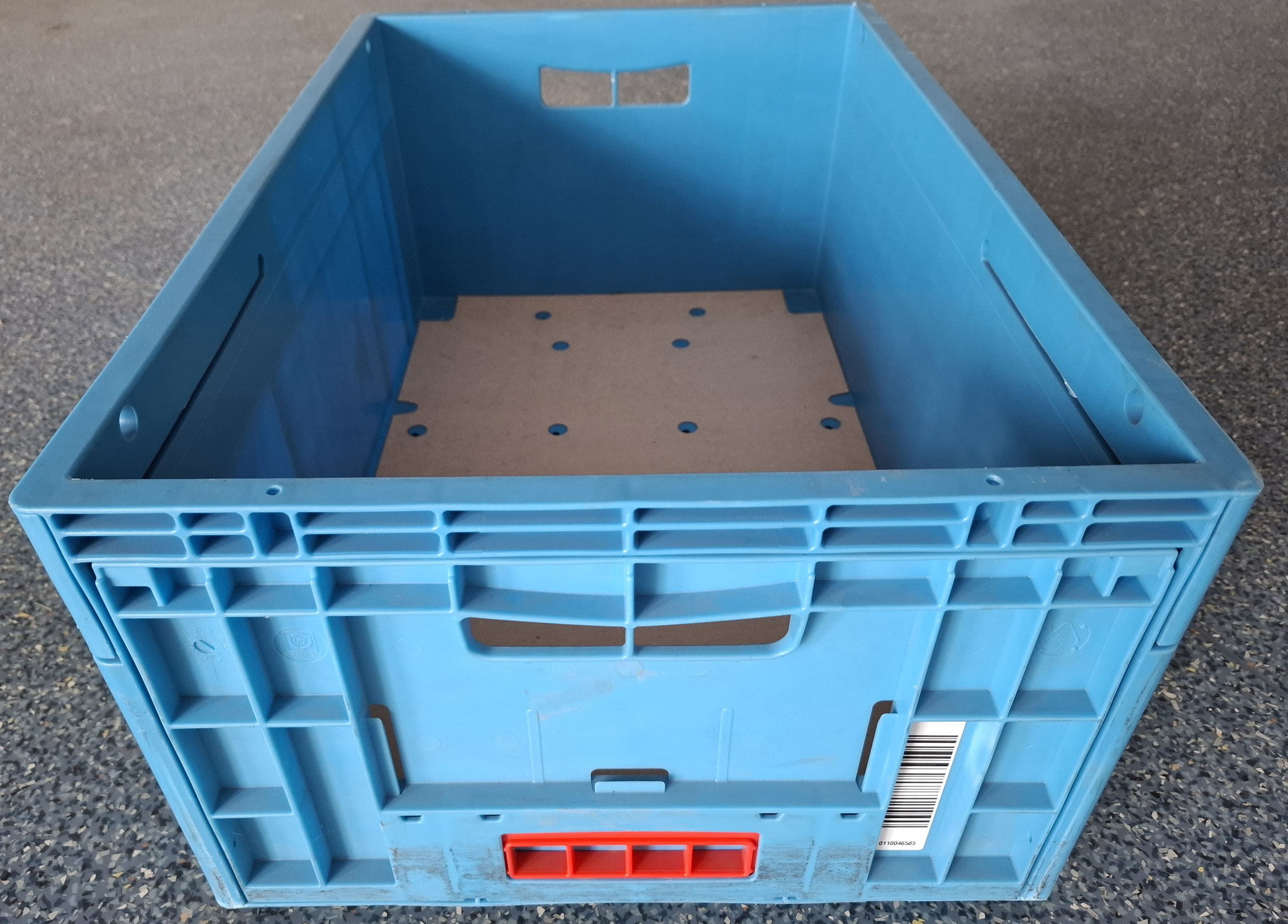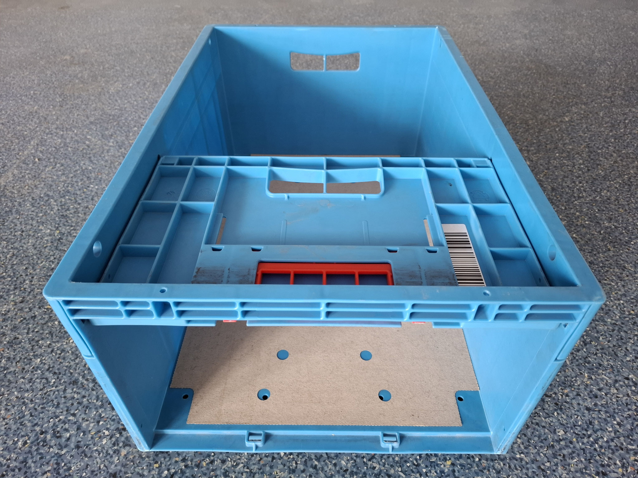 Die Behälter können für ein Kommissionierlager ohne Regal verwendet werden: schneller Aufbau eines kompakten Lagers ohne Regal (Zugriff über die Klappe)