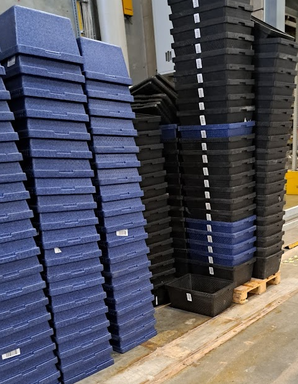 Verfügbar sind ca. 100.000 Wannen mit Deckel, das entspricht ca. 1.800 Paletten