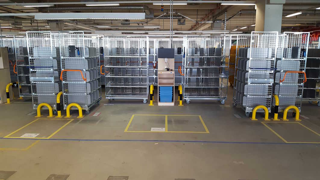 Die Palettenregale sind aufgebaut und können vor Ort besichtigt werden.